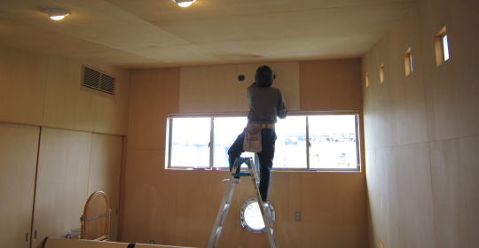 ひとまず新しい壁材を貼り直し、今日のところは作業終了。