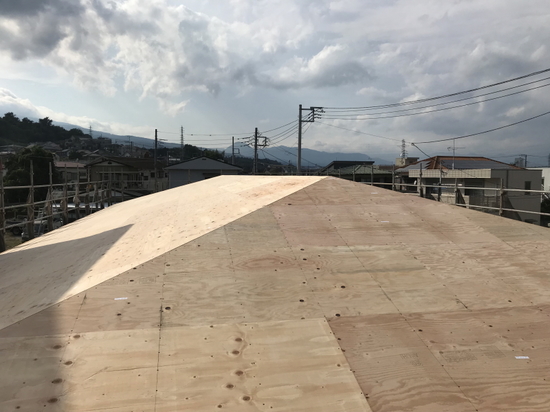 台風が通り過ぎた10(火)と11(水)の二日に掛けて、公民館の建て方工事が行われました。風の被害が各地に出た翌日に足場を建てられるのか? さらにその翌日から建て方工事が行えるのかと現場サイドでも悩み、それに関連するように自治会様にも、諸々の準備の面でご心配をお掛け致しましたが、無事に建て方作業を終えることが出来て何よりでした。