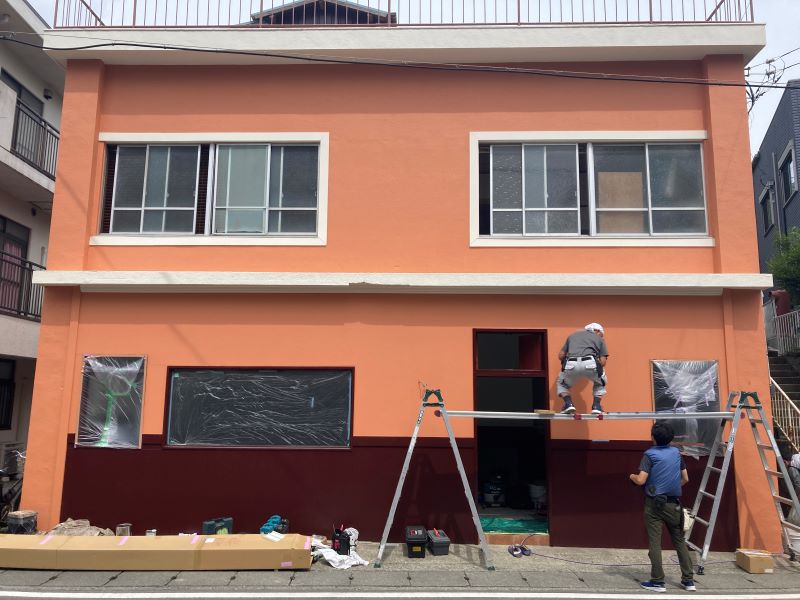 湯河原町で工事中の荒井商店様の現場。1階はペルー料理を提供する店舗で、2階はオーナーの住居スペース。もともと新橋で営業されていたミシュランの星を持つお店が、テナントビルの都合で立ち退きを余儀なくされ、サーフィンや釣りも楽しめ、美味しい食材が手に入る湯河原町に新規に開店するという計画。